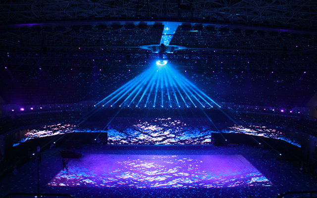 ??經(jīng)典影視負(fù)責(zé)開幕式高清LED視頻設(shè)計制作,及現(xiàn)場視頻導(dǎo)播切換。臺州市首屆體育大會LED視頻制作花了一年策劃設(shè)計,三個月動畫合成,總共600多平方的高清LED,300平方的地坪,一直修改校色,終于完美展現(xiàn)!高科技的光影交響,超震撼的視覺享受。得到了市領(lǐng)導(dǎo)的高度肯定。一次巨大的挑戰(zhàn),一次唯美的綻放。于無聲處傾聽生命,于燦爛處感受陽光。
