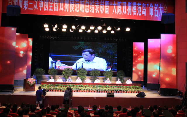 ??我市在市文化藝術(shù)中心隆重召開(kāi)慶祝臺(tái)州市第三次爭(zhēng)創(chuàng)全國(guó)雙擁模范城總結(jié)表彰暨“大陳雙擁模范島”命名大會(huì),總結(jié)成績(jī),表彰先進(jìn),并動(dòng)員全市上下珍惜榮譽(yù),再鼓干勁,進(jìn)一步鞏固和擴(kuò)大雙擁創(chuàng)建成果,為實(shí)現(xiàn)全國(guó)雙擁模范城“四連冠”而努力。市領(lǐng)導(dǎo)陳鐵雄,元茂榮,肖培生出席大會(huì)。