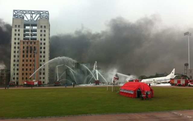 浙江省消防演習(xí) 我公司負(fù)責(zé)現(xiàn)場十機(jī)位高清錄播。用自動感應(yīng)車拍攝演習(xí)。
